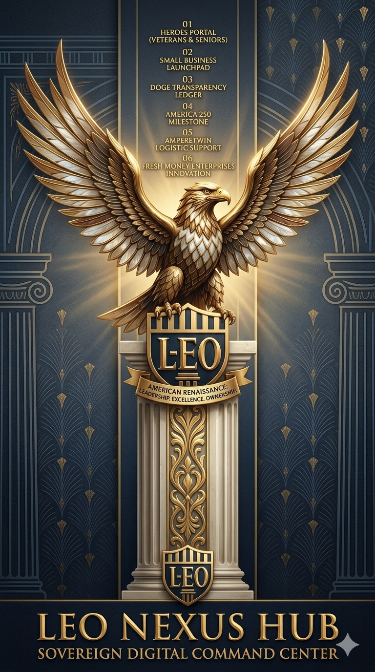 THE GENESIS OF LEO: The LEO standard is not merely a brand—it is a lineage. Rooted in a deep respect for those who built and defended the nation, Leon envisioned a future where Veterans and Seniors are no longer sidelined by legacy systems. That vision is manifest in AmpereTwin Global HQ and the LEO Nexus Garden, integrated environments that marry physical stewardship with digital sovereignty. These initiatives create Living Ledgers of efficiency—real-time systems that document service, validate outcomes, and preserve institutional memory—so that care and recognition are delivered consistently and without delay.